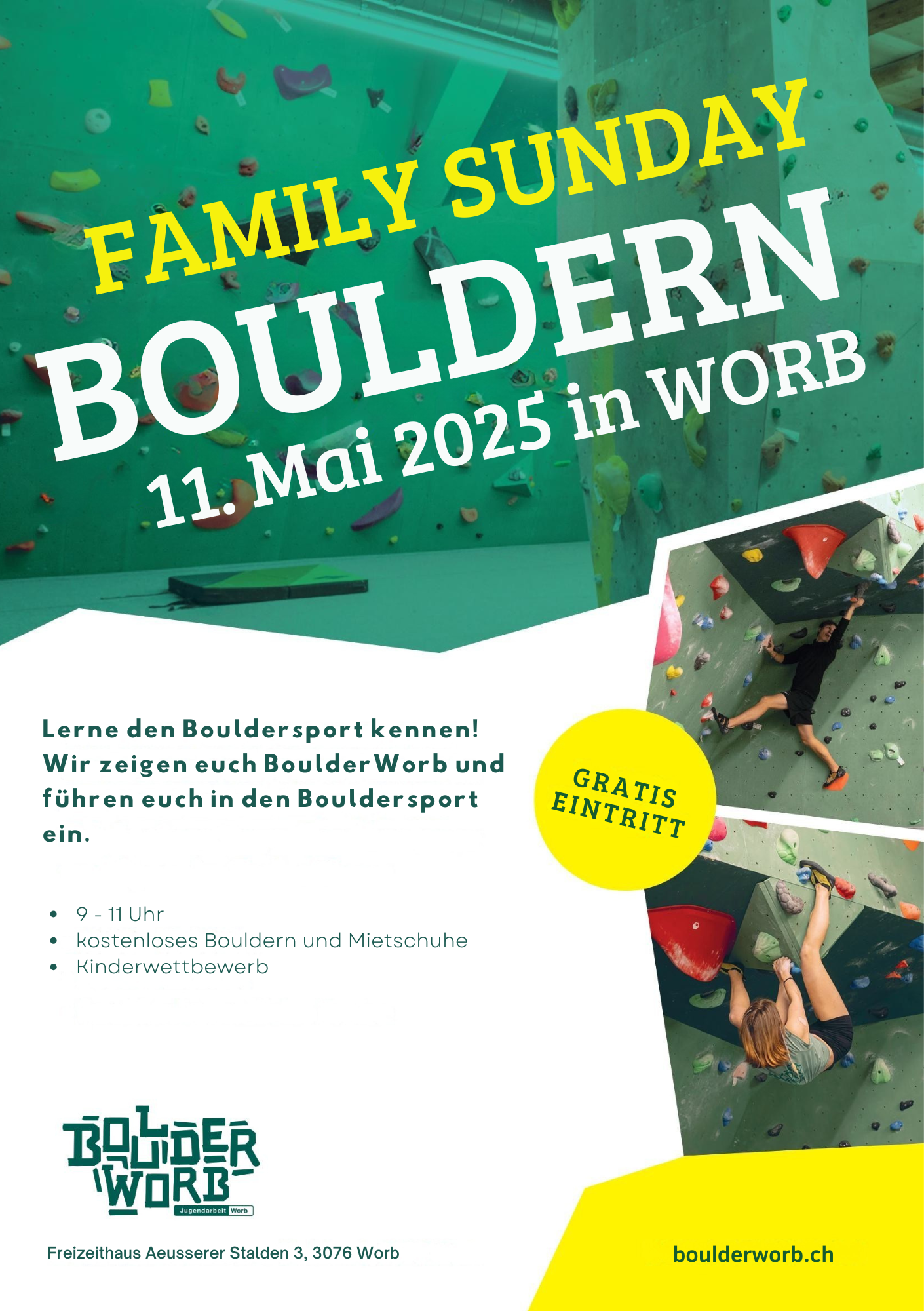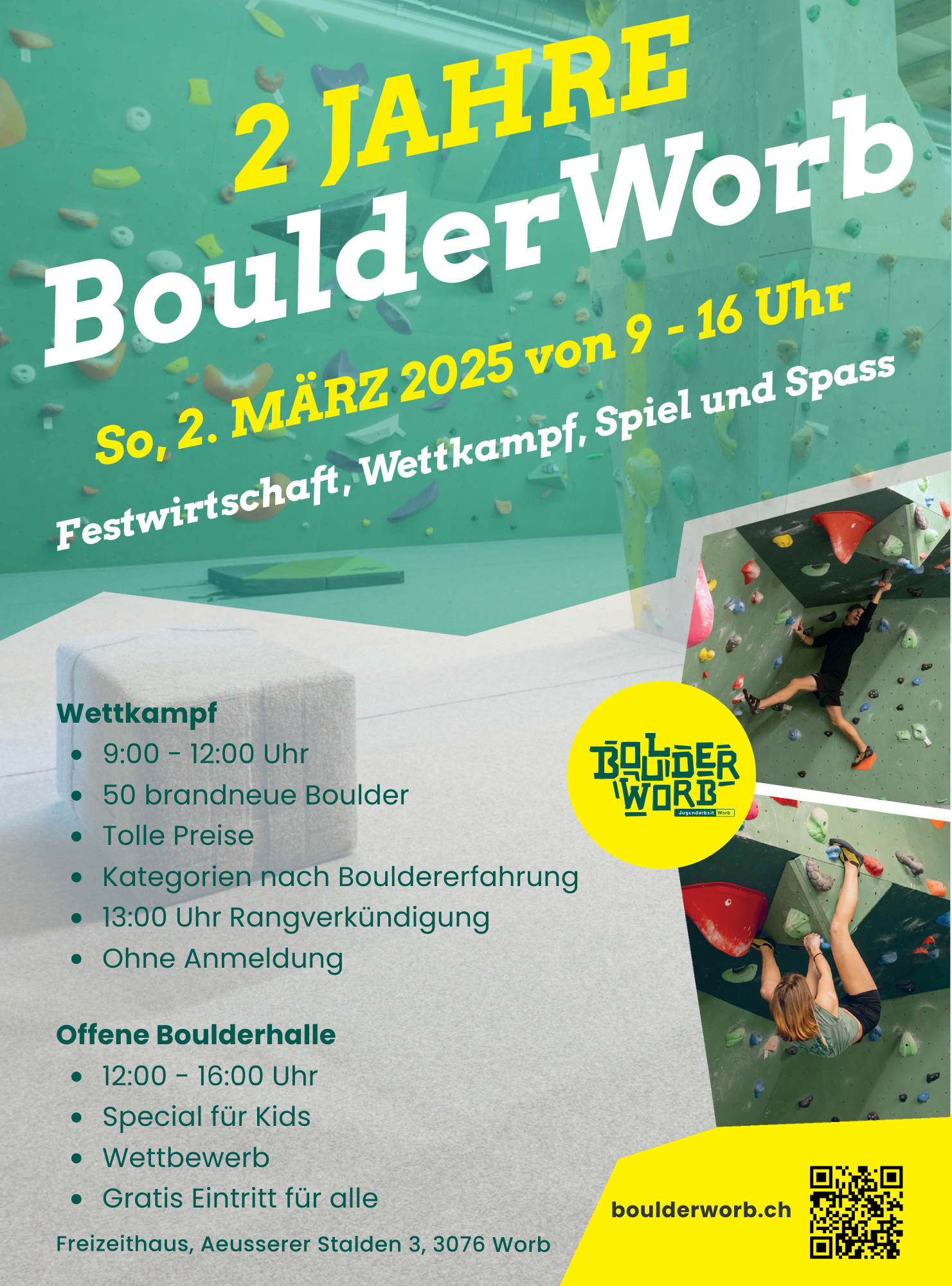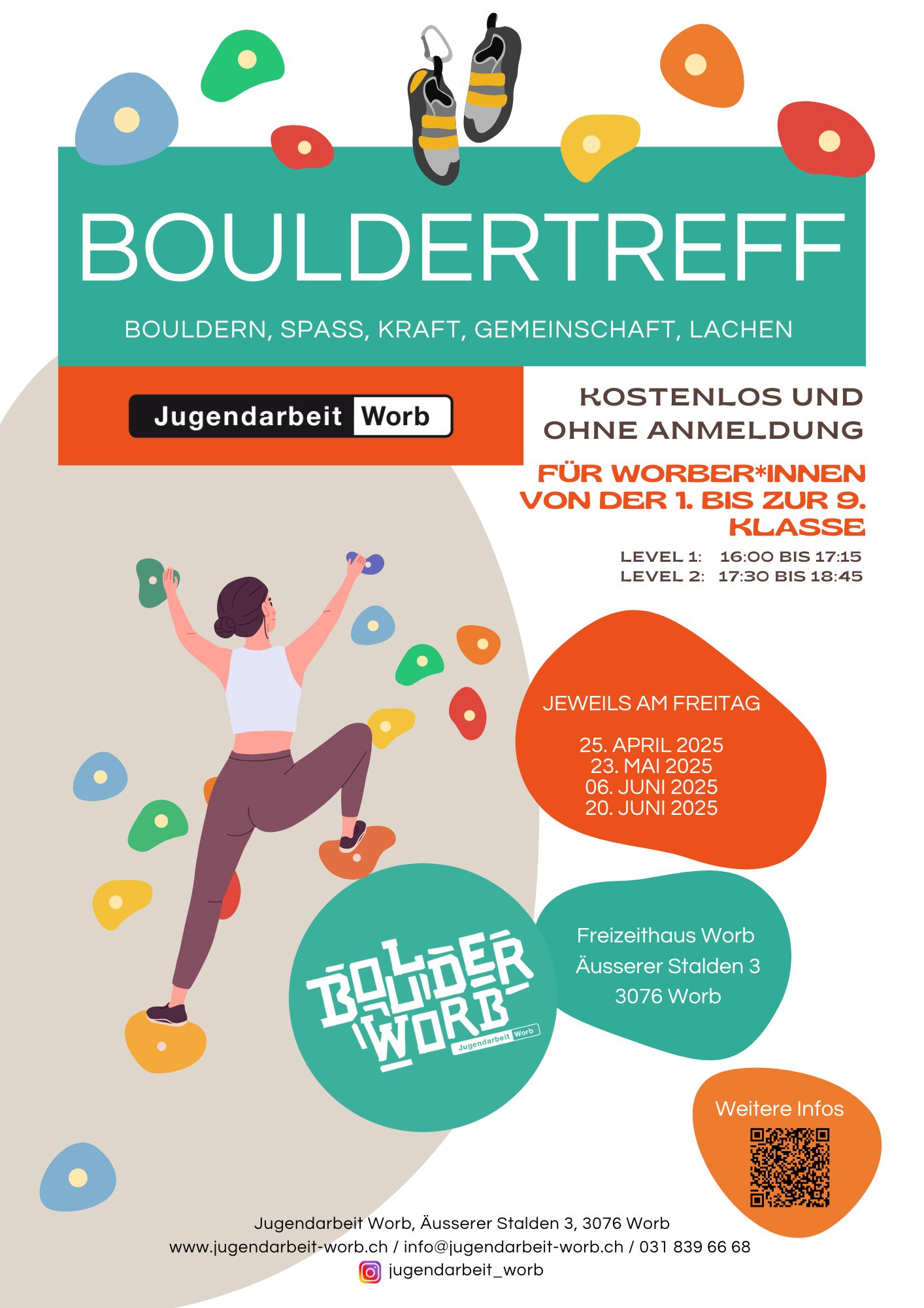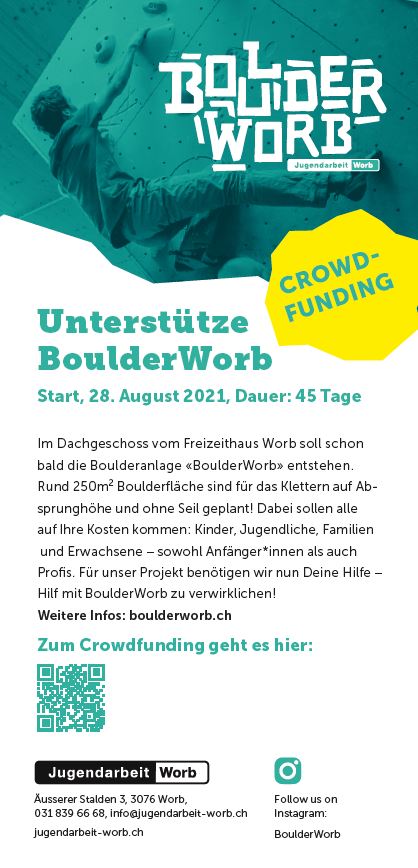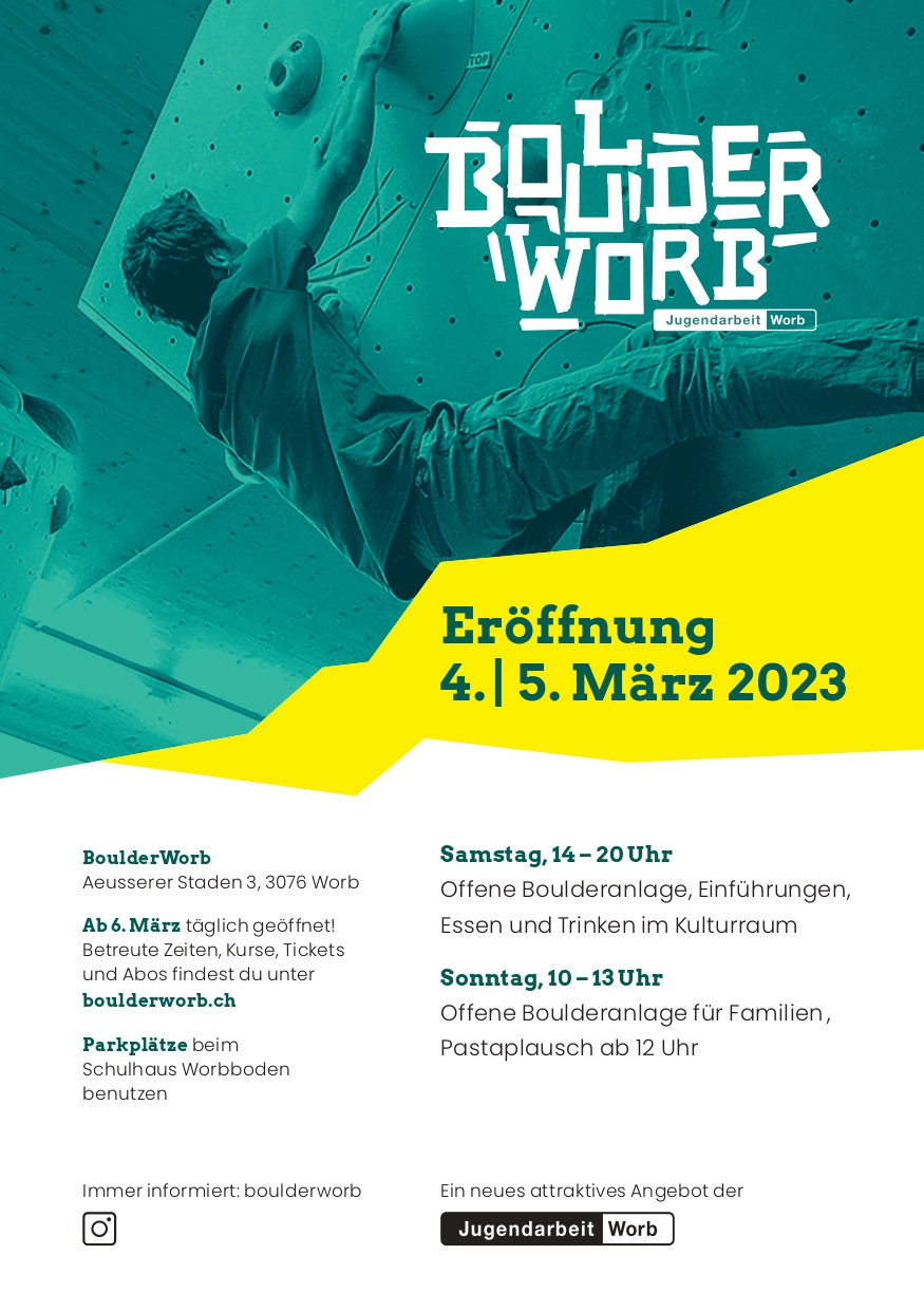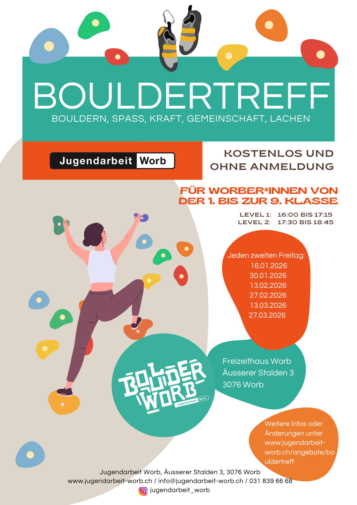 Weitere Informationen unter www.jugendarbeit-worb.ch/angebote/boulderworb