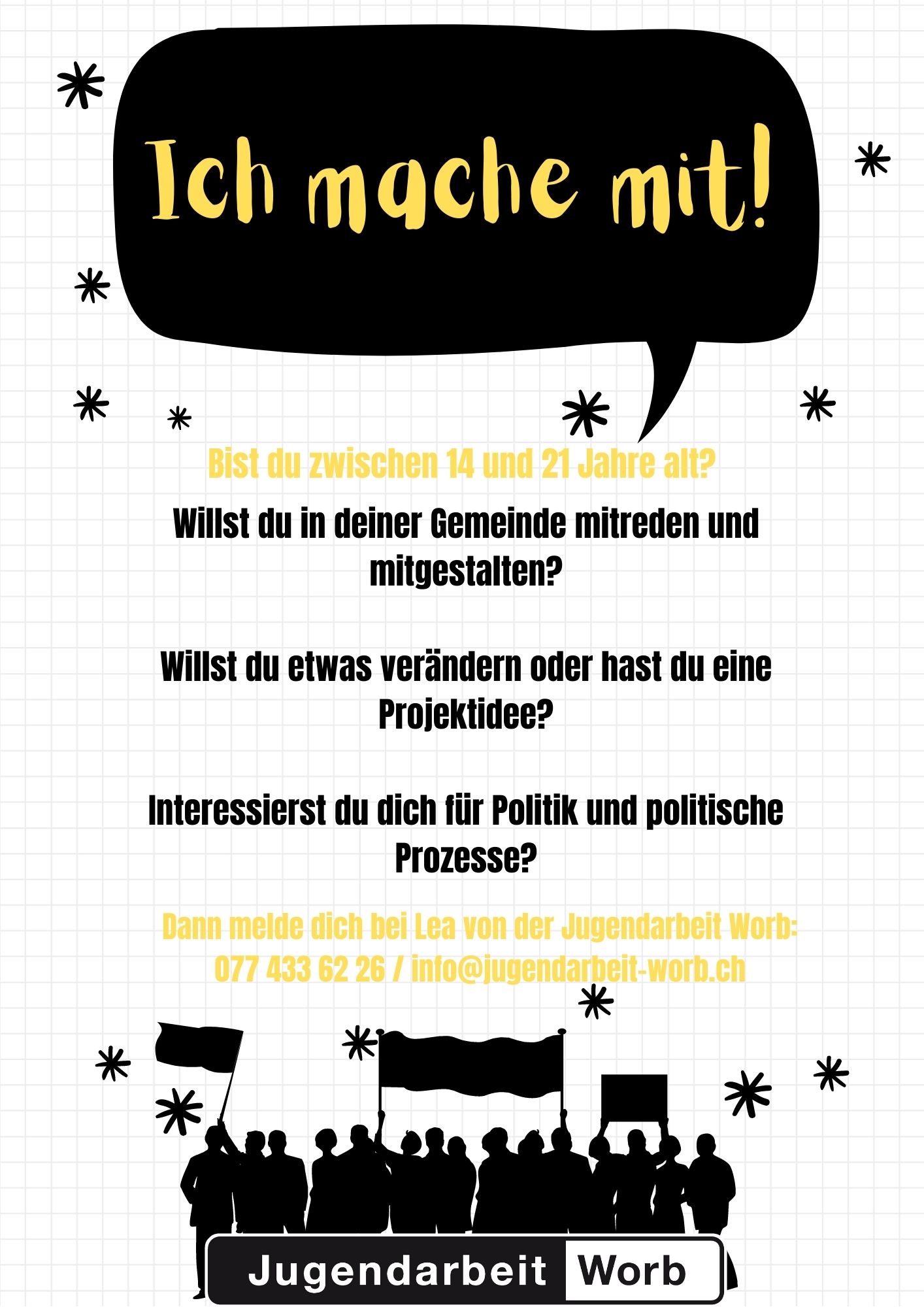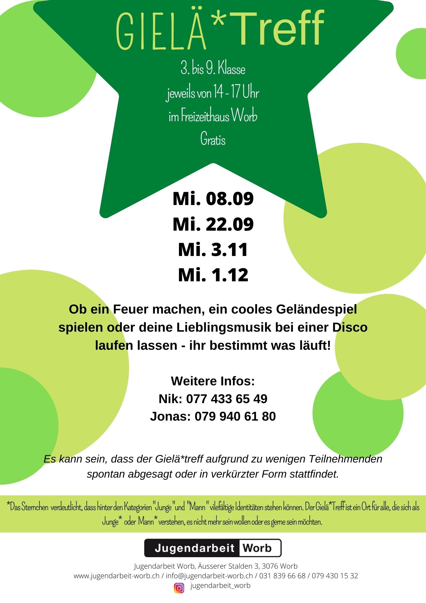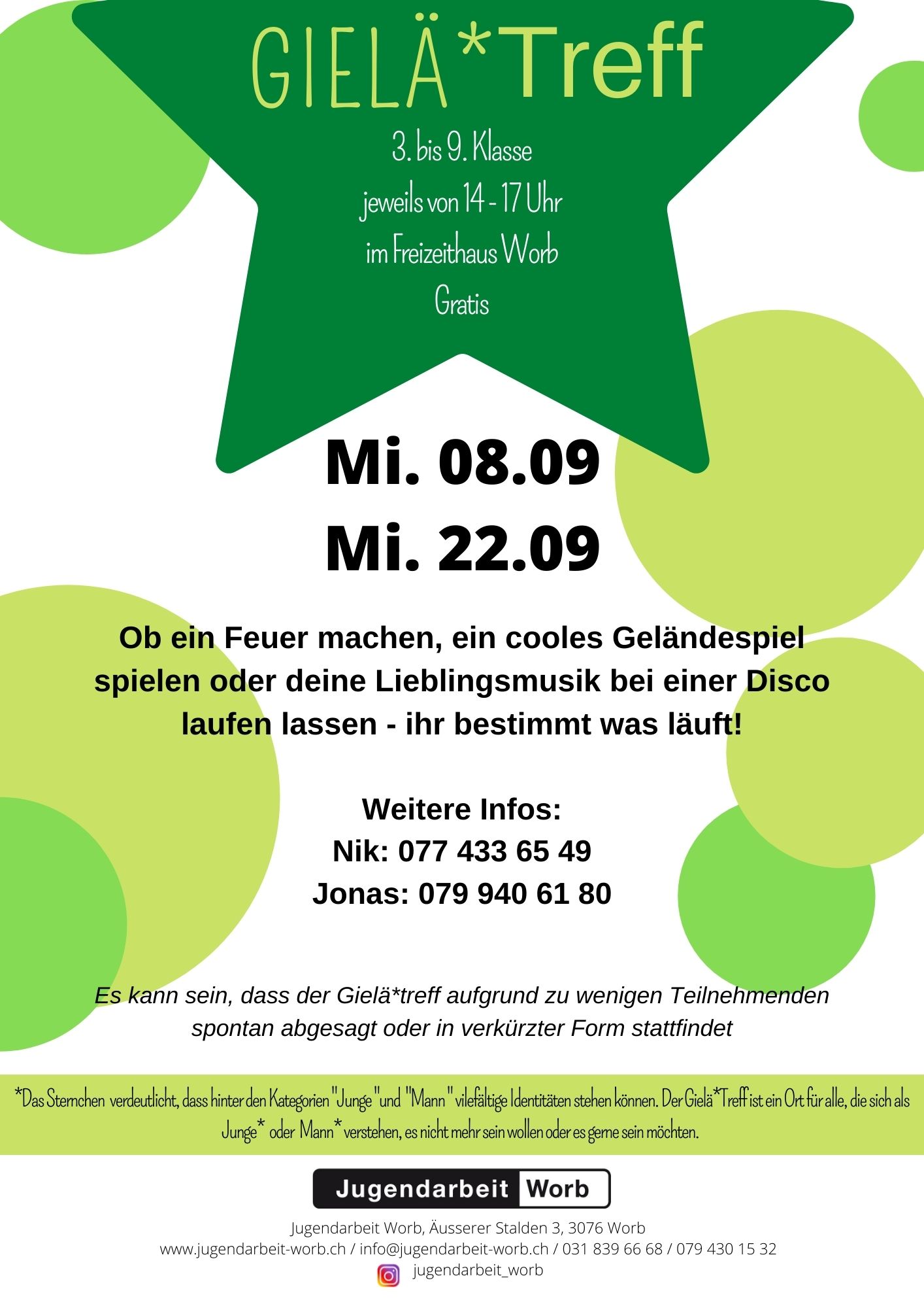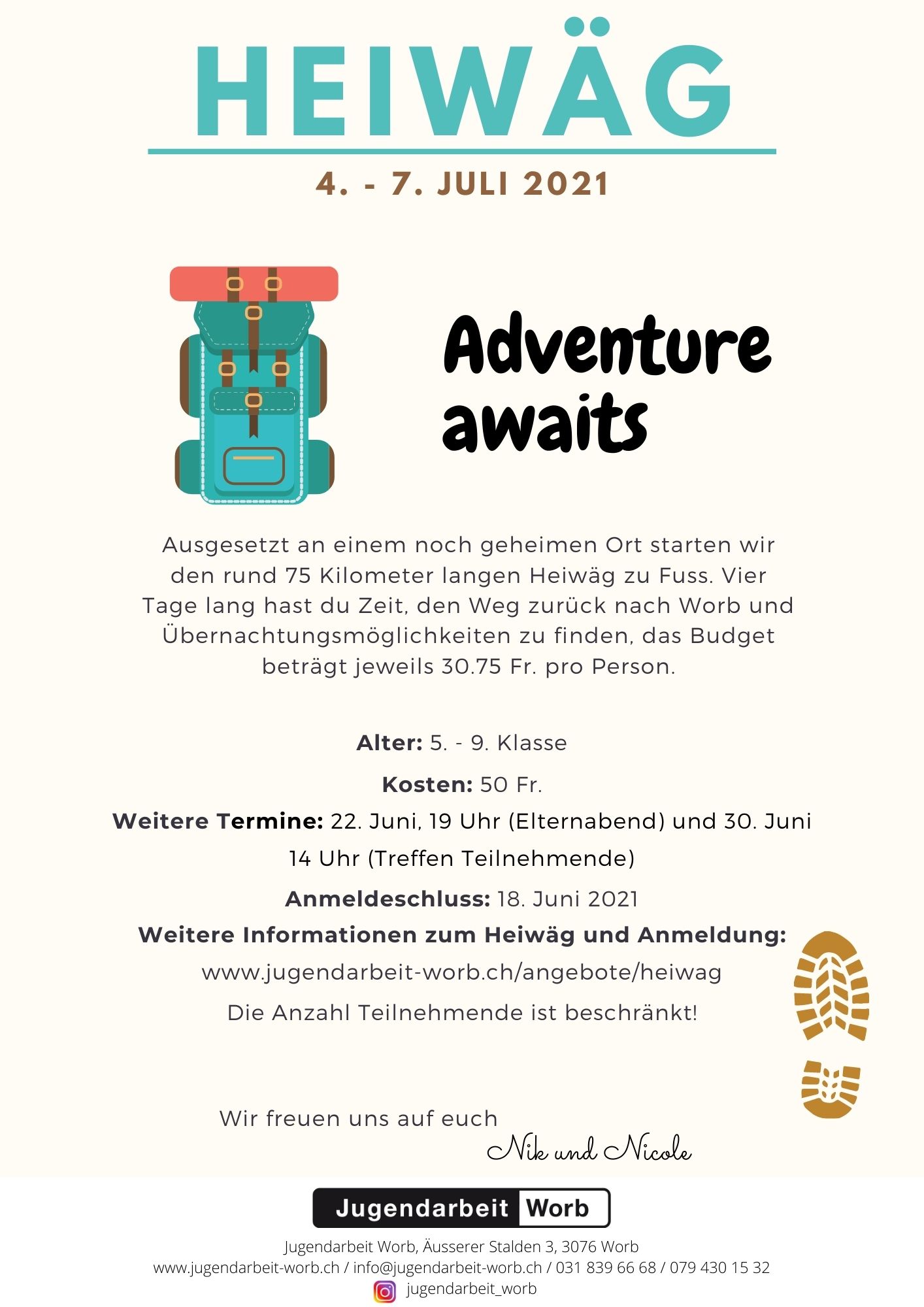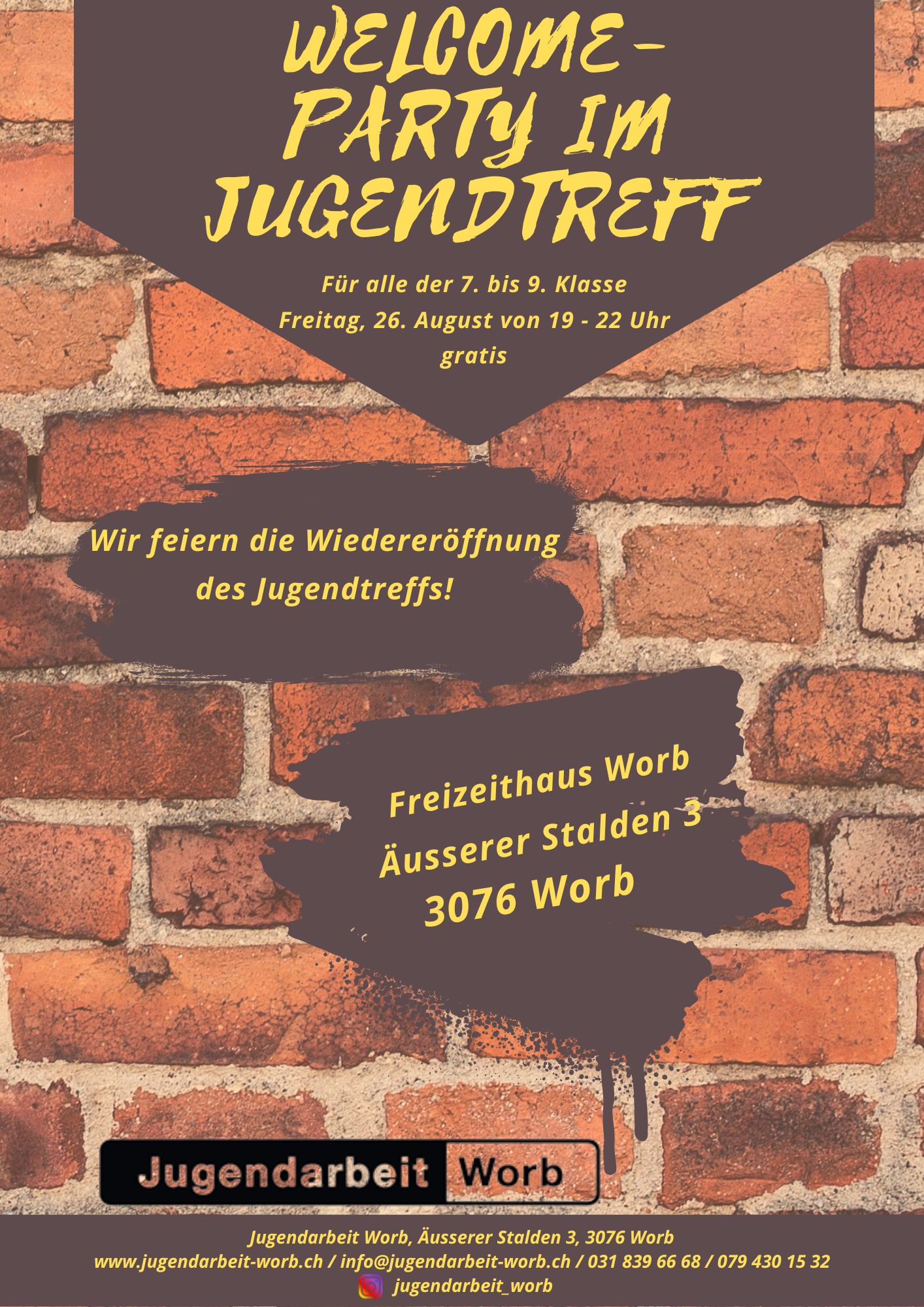 Die Jugendarbeit Worb ist weiterhin per Mail (info@jugendarbeit-worb.ch), über 031 839 66 68 und immer über 079 430 15 32 erreichbar. Die aktuellsten Informationen online: www.jugendarbeit-worb.ch.