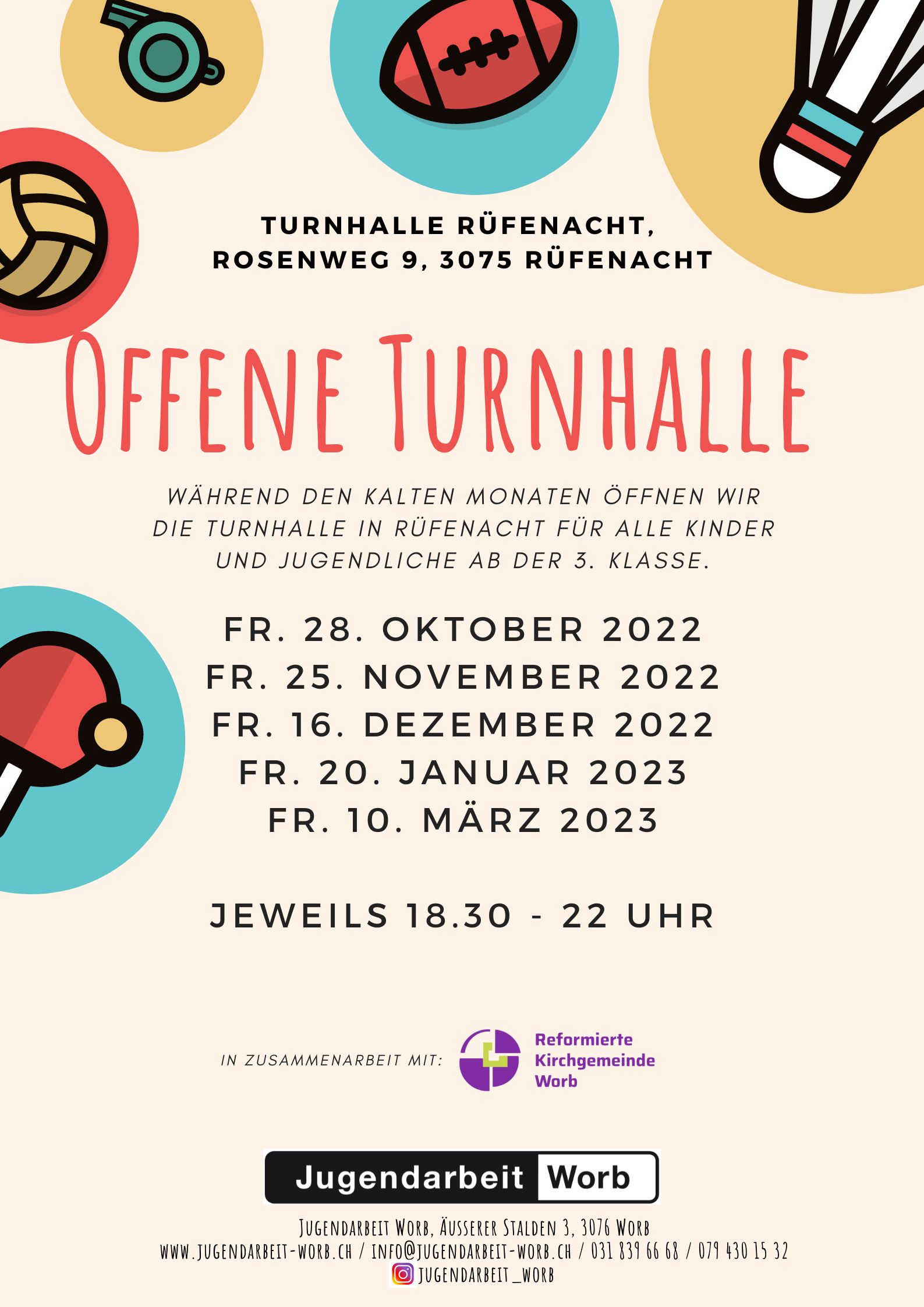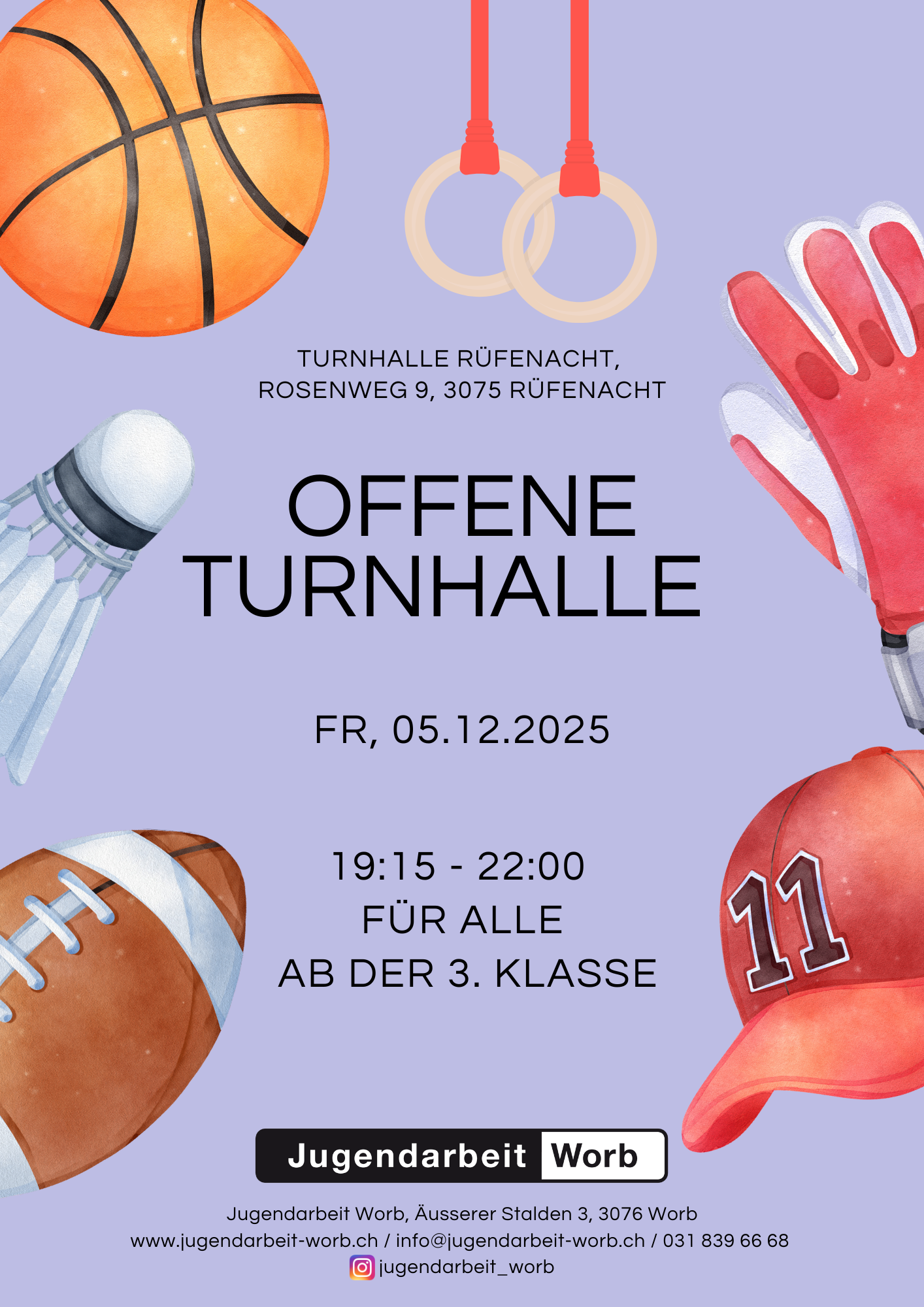 Wir freuen uns, auch im 2026 die beliebte "Offene Turnhalle" in Rüfenacht anbieten zu können.