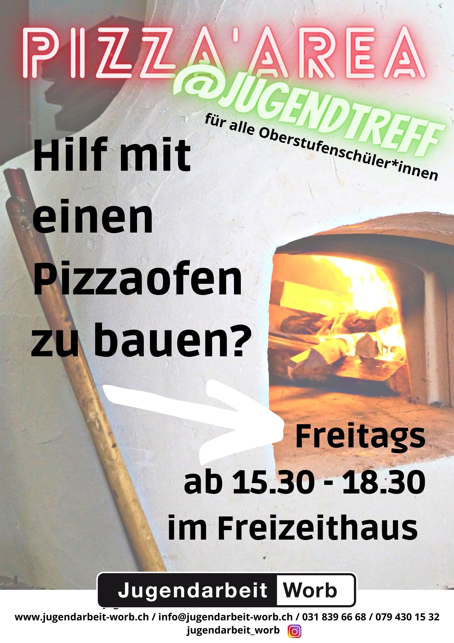info@jugendarbeit.ch oder besuche uns jeweils am Donnerstag von 11:45 bis 12:30 im Oberstufenschulhaus Worbboden.