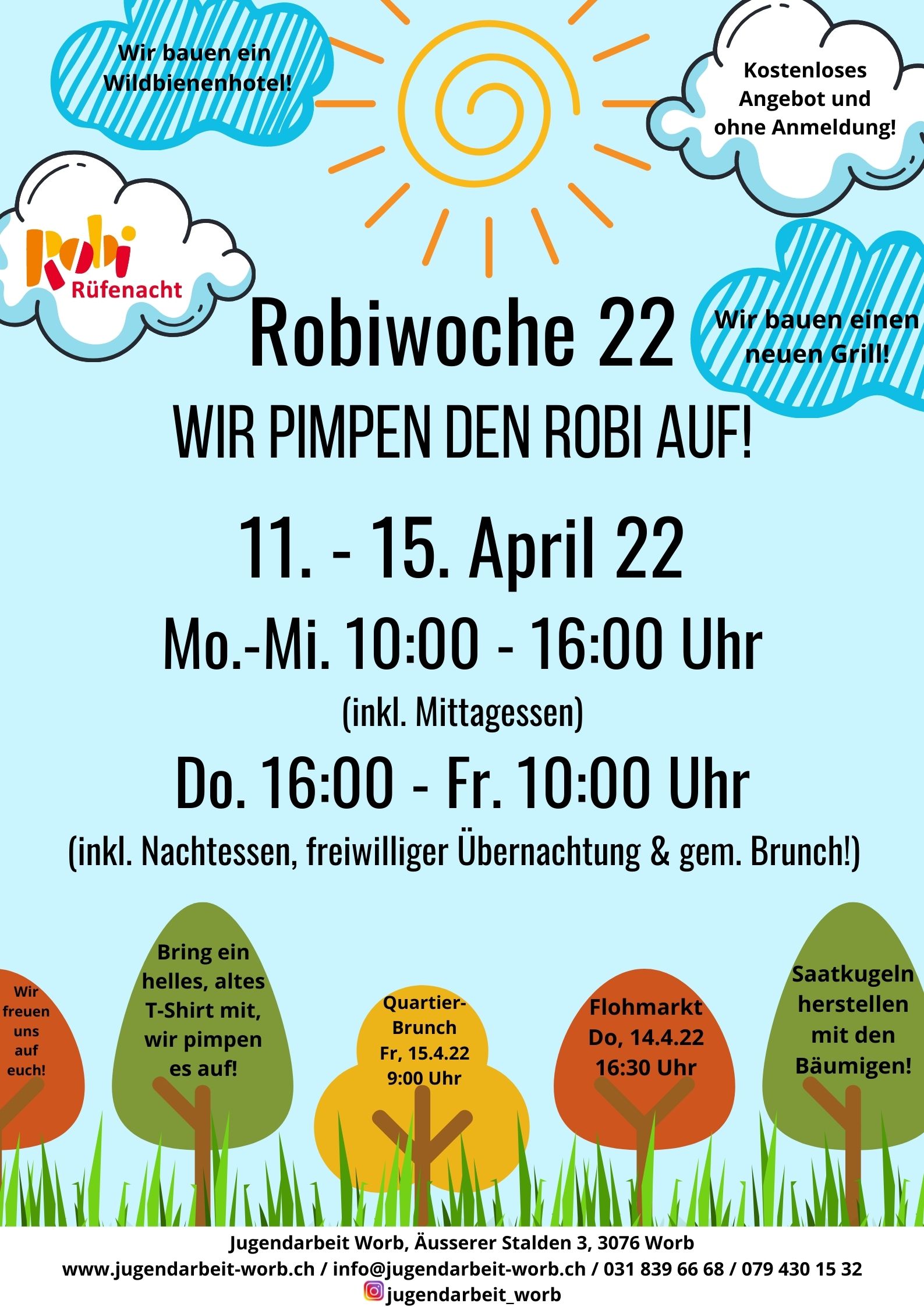 Vom 14.4.25 bis am 18.4.25 findet die alljährliche Robi-Woche auf dem Spielplatz im Scheyenholzquartier statt.