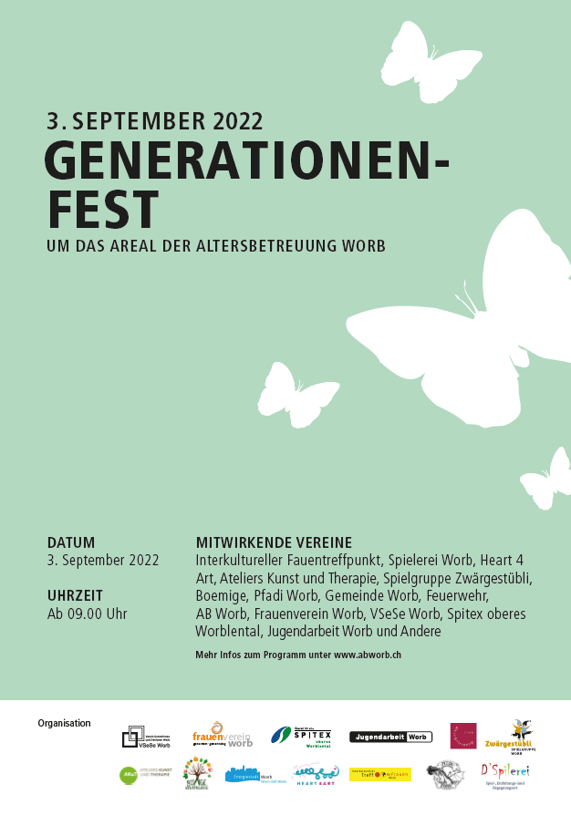 FlyerDas Generationenfest am 6. September 2025 in Worb bietet so einiges: Ein Fest für die ganze Familie mit Marktständen, Festwirtschaft und vielen weiteren Angeboten. Die Jugendarbeit wird mit Spieltischen und einer Mitmachbaustelle vor Ort sein.