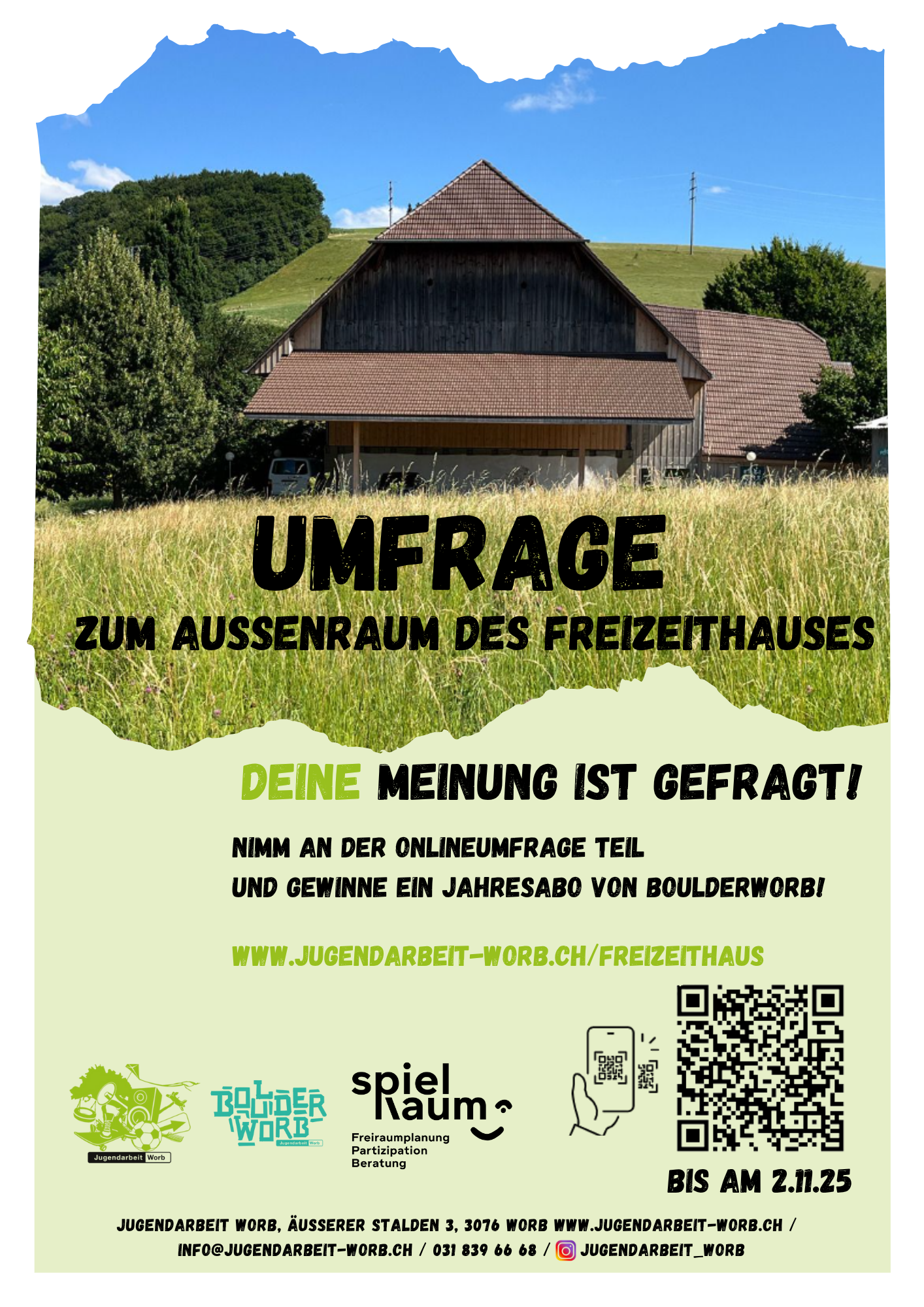 Wir möchten den Aussenraum des Freizeithauses neu gestalten und sind deshalb an deiner Meinung interessiert: